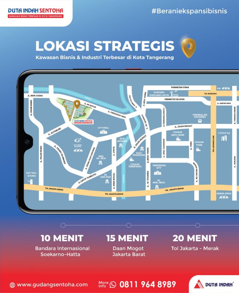 Duta Indah Sentoha merupakan kawasan bisnis dan industri terbesar di kota Tangerang yang memiliki lokasi sangat strategis sehingga cocok untuk anda jika memiliki bisnis disini karena berdekatan dengan beberapa lokasi vital seperti Bandara Soekarno Hatta dan Toll Jakarta – Merak.